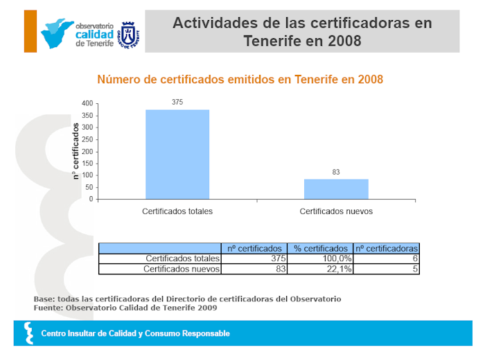 Número de certificados emitidos en Tenerife, según los datos del estudio del Directorio de certificadoras del Observatorio de Calidad de Tenerife.