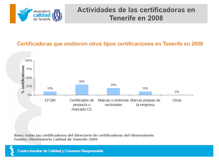 Gráfico: Certificadoras que emitieron otros tipos de certificaciones en Tenerife en 2008. Estudio 2009